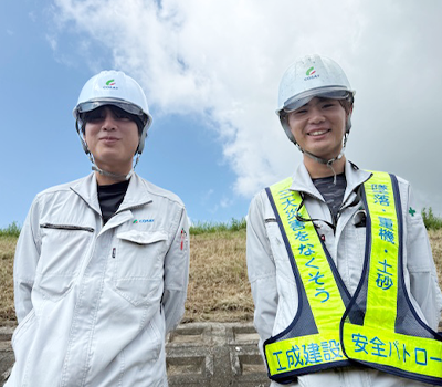 - 工事が竣工した時に地域の方に感謝の言葉を頂いたときは嬉しかったです。また、ヘリポートの工事を担当したのですが、竣工後にドクターヘリが活躍している様子を見て「誰かの役に立つ仕事ができた」というやりがいを感じました。