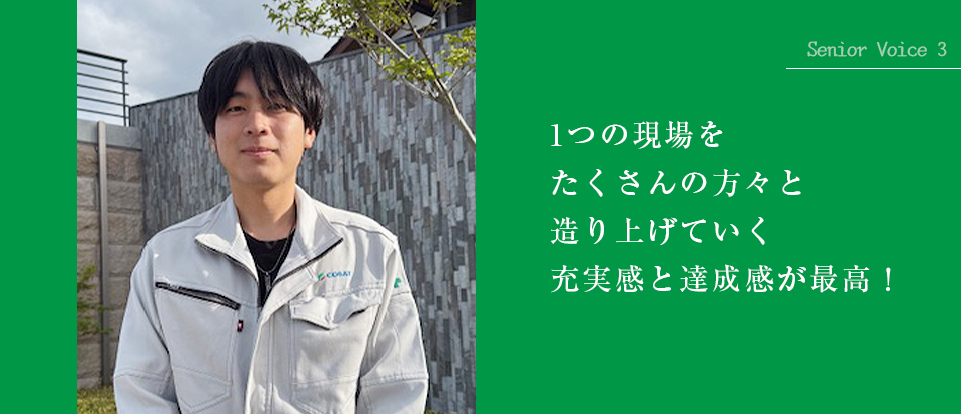 - 在学中に行われた説明会で興味を持ち、その後インターンシップに参加しました。その時お世話になった担当の方に憧れて、「この人のような現場監督になりたい!この人と一緒に仕事をしたい!」と思ったことが決め手です。